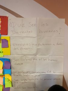 El primer taller inició con una ceremonia de apertura de la mano de las compañeras de las organizaciones Oxlajuj’e y CEIBA junto con la presencia de EntreAmigos-Lagun Artean en formato telemático. Fue un espacio de presentación en el que pudimos participar también desde Euskal Herria, para seguir impulsando esos espacio de intercambio y aprendizaje continuo, enriqueciéndonos de los procesos que las mujeres y las organizaciones de mujeres del territorio llevan a cabo. Las actividades fueron diseñadas para facilitar la participación y el intercambio de conocimientos entre las participantes. Para este primer taller, se planteo un espacio de formación más teórica, pero siempre con dinámicas prácticas, para introducir temas estratégicos de análisis como pueden ser, los derechos humanos de las mujeres, la incidencia política y las violencias contra la mujer, aprendizajes que entrecruzados con las vivencias de las propias mujeres.