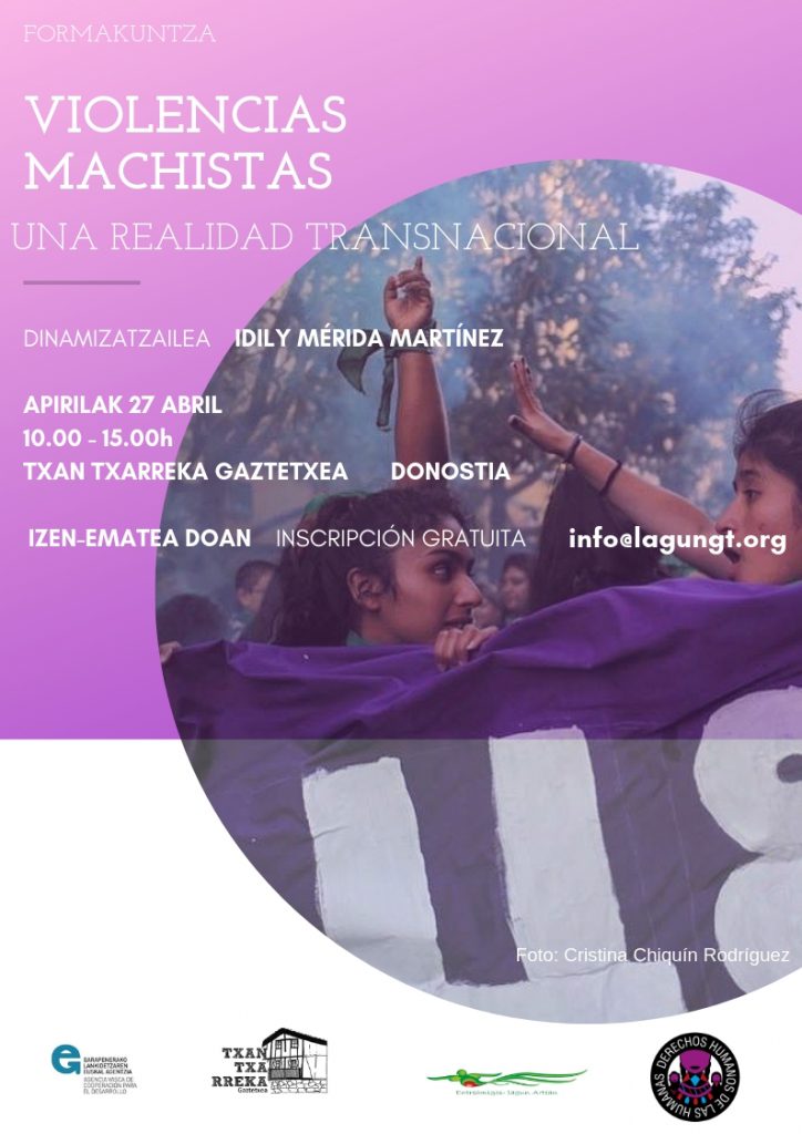 Dokumentalaren harira, formakuntza bat antolatu dugu, “Violencias Machistas: Una realidad transnacional” izenarekin. Larunbatean, hilak 27, izango da Idily Mérida Martínezen eskutik. Biolentzia matxistak aztertu eta horien gaineko hausnarketa egingo dugu, nazioaren gaindiko arazo eta errealitate diren ikuspuntutik. Hori horrela, emakumeen giza eskubideen bortxaketa motak nahiz erailketak hizpide izango ditu, ikuspegi orokorretik abiatuta.